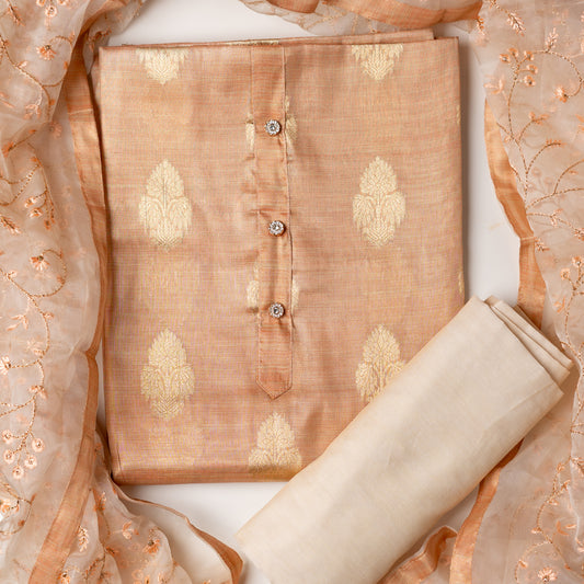 Party Wear Unstitched Salwar Suit Material (Cream)