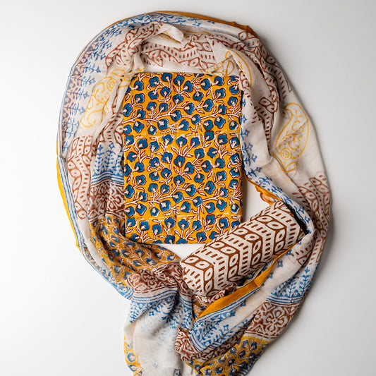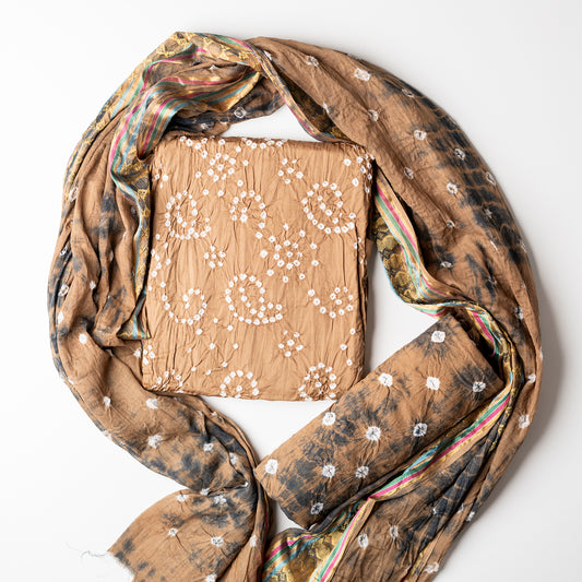 Cotton Bandhani Unstitched Dress Material (Brown)