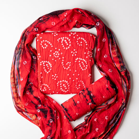 Cotton Bandhani Unstitched Dress Material (Pink)