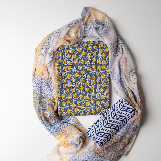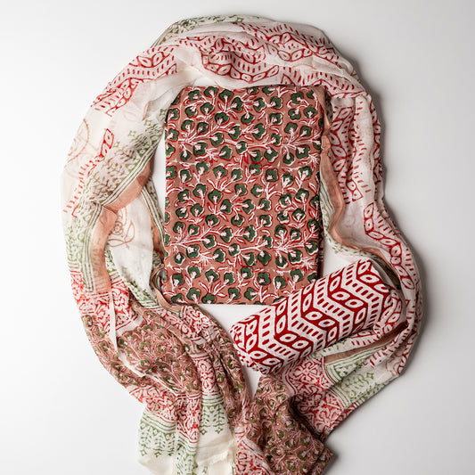 Party Wear Unstitched Salwar Suit Material (Cream & Green)
