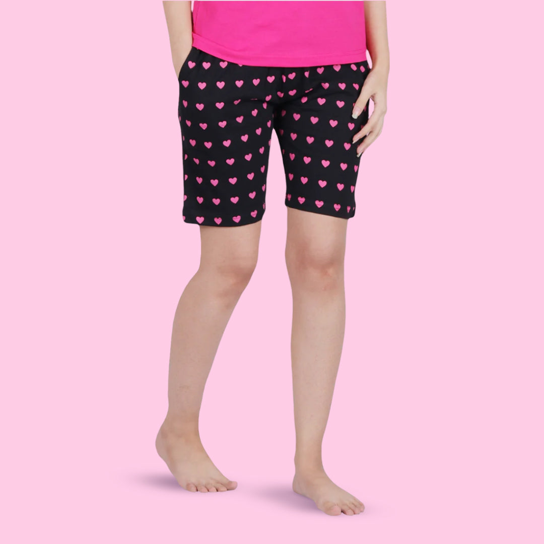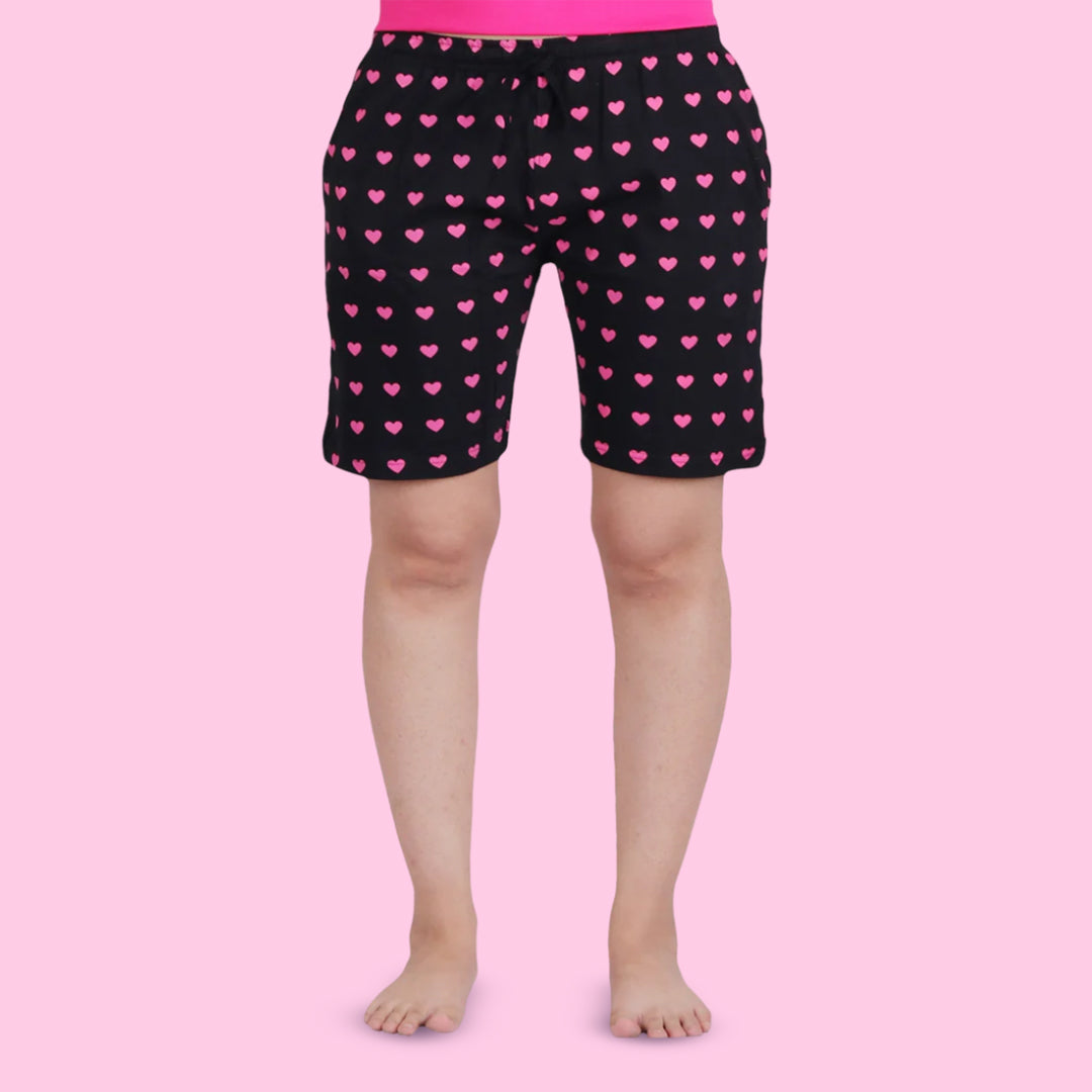 Relaxed Fit Shorts for an all day comfort with tiny pink color heart prints