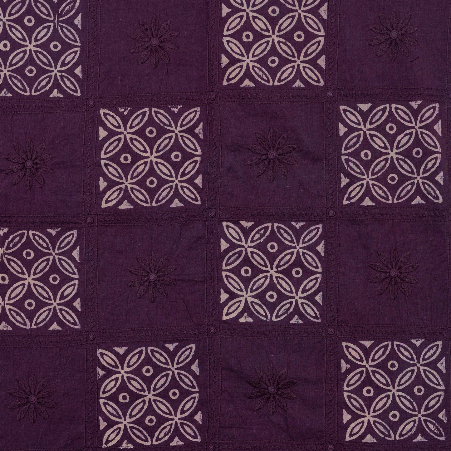 Cotton Embroidered Batik Dress Material with Mul Dupatta (Purple)