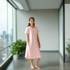 Women's Cotton Printed Knee Length Short Nighty with Pocket - Light Pink
