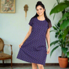 Cotton Printed Knee Length Short Nightdress - Navy Blue