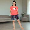 Cotton Printed Night Shorts Set - Coral & Navy Blue -