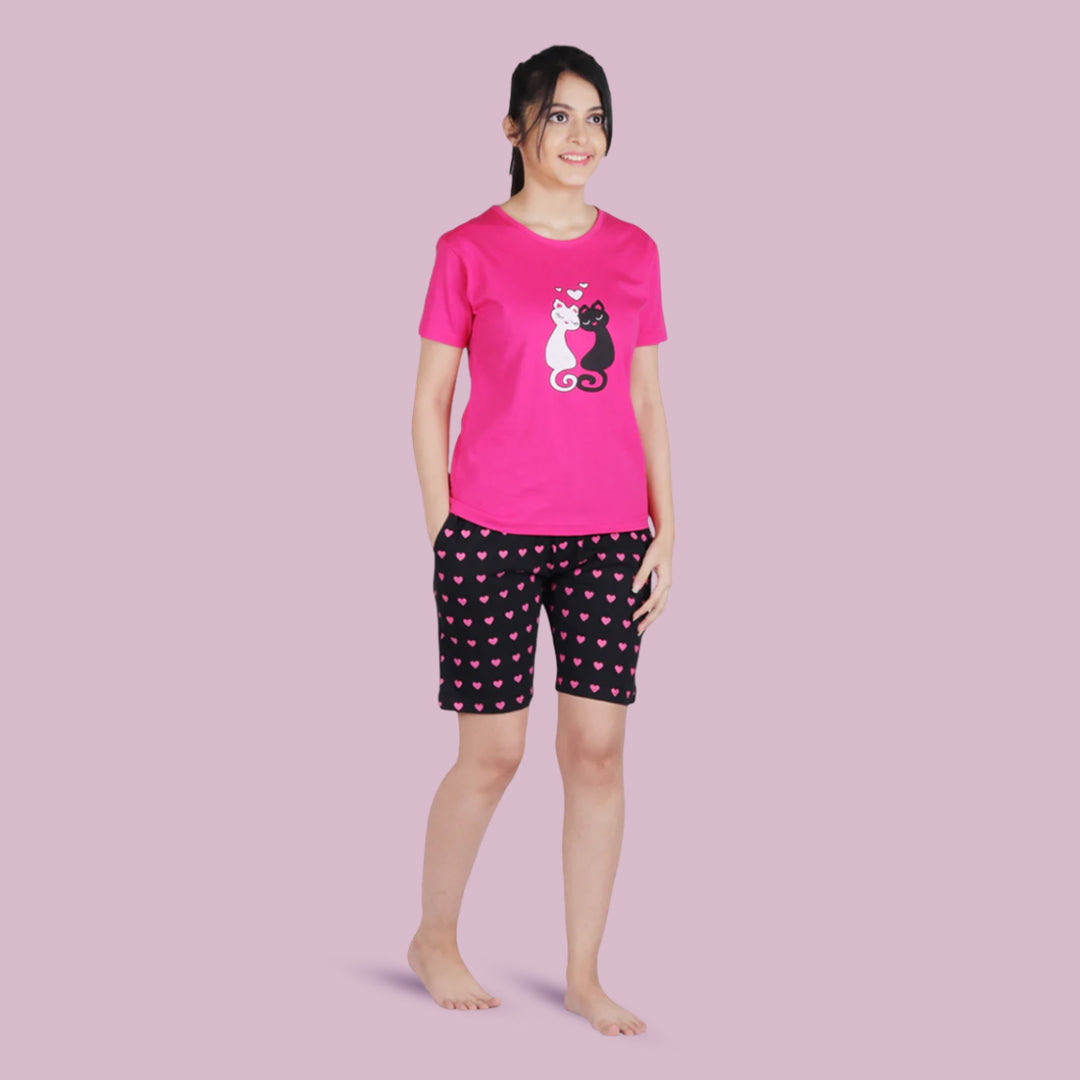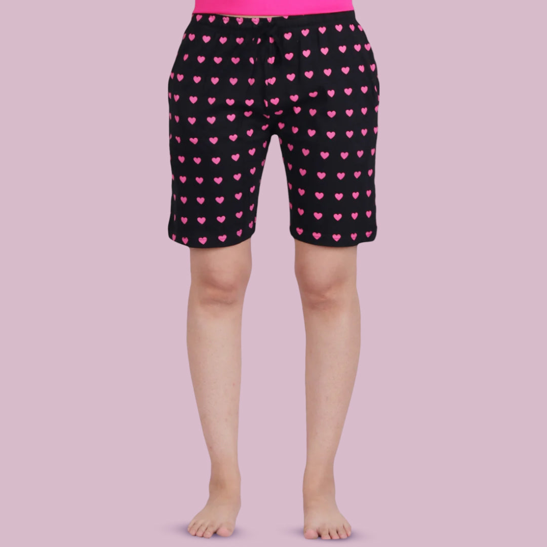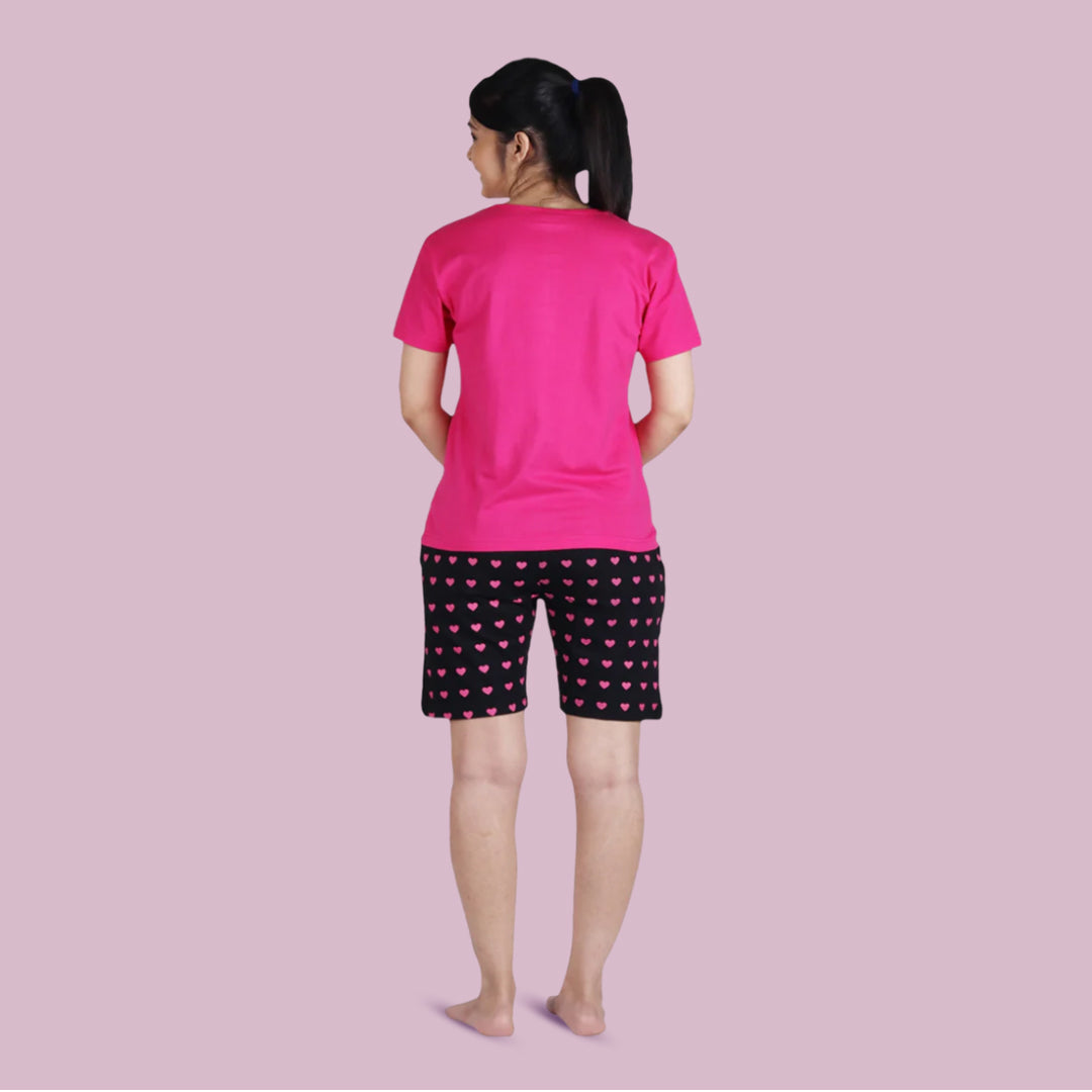 - Print : Placement print on t-shirt and Tiny pink colour heart prints on shorts