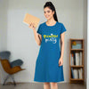 Women's Cotton Knee Length Short Nighty with Pocket - Teal