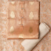 An elegantly crafted Tissue Silk Party wear dress material. A set best suited to gift bride to be or your loved on your anniversary. Tissue silk top with golden color embossed designs, it has show buttons in neck area, also golden color borders in side. Silk dupatta with embroidery work with the same color thread of top and also golden color threads. Cream color cotton silk bottom.