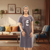 Women's Grey Cotton Short Nighty - Cute "Peeking Panda" Graphic Print